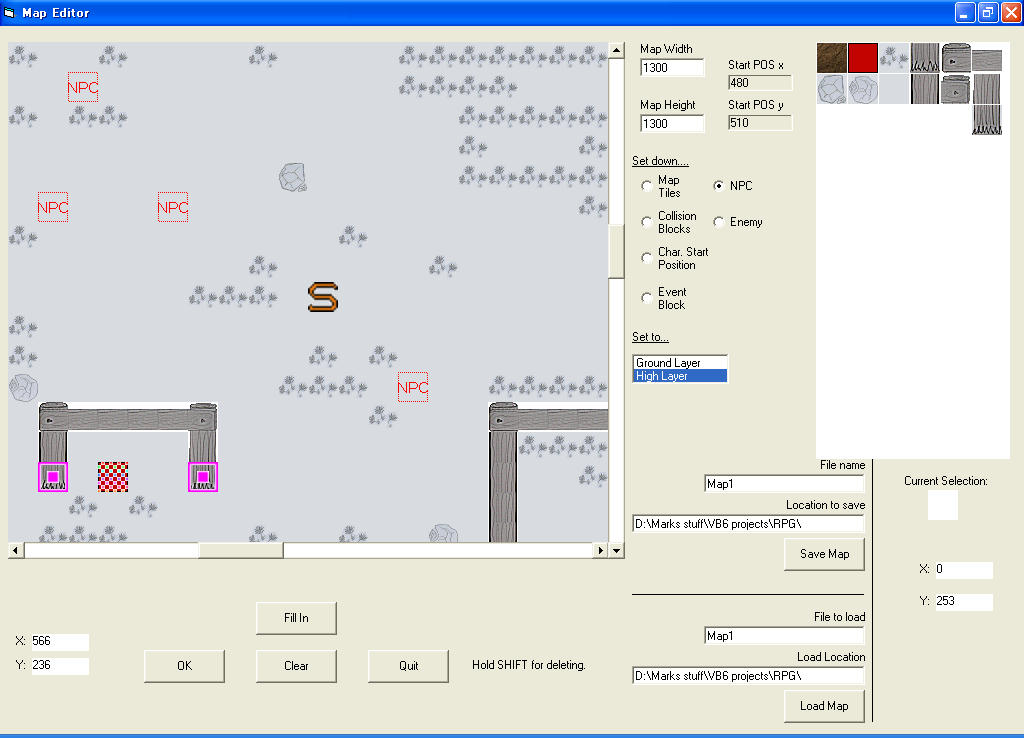Hi, I'm Mark (AKA: Kyo). I've always dreamed of making my own RPG from scratch. So I WAS trying to make it. I WAS writing it in Visual Basic 6.0 using DirectX8. For testing purposes, I WAS using graphics from the game SECRET OF EVERMORE. But then I threw out the Secret of Evermore graphics and began using my own test graphics. Unfortunately, due to being pressured to find a better job, I need to spend more time job searching and working on stuff towards my career. I'll leave this stuff up though for memories. E-mail me if you have any questions.